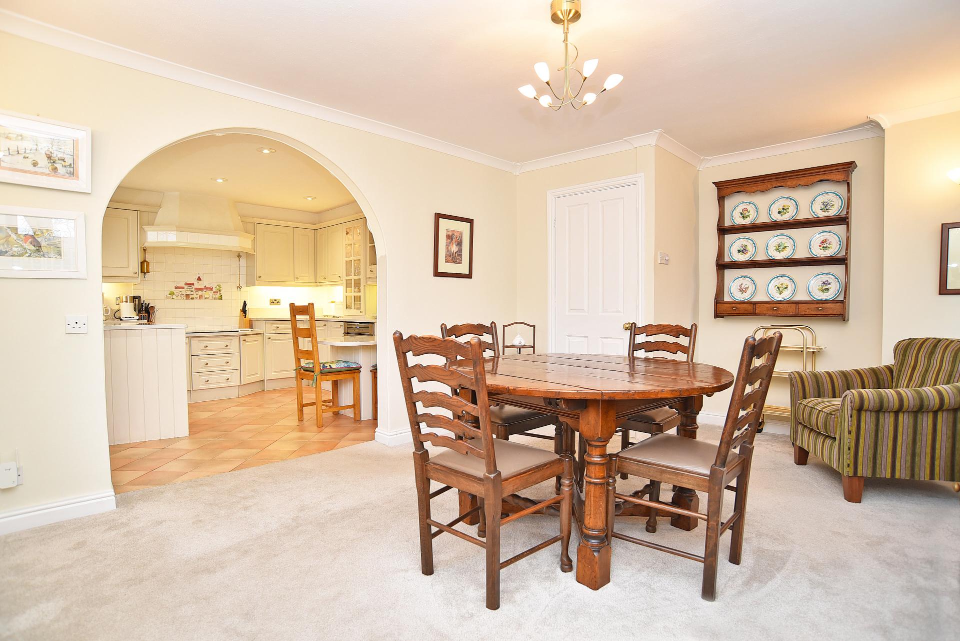 ACCOMMODATION The property offers predominantly ground-floor living, with thoughtfully arranged and well-proportioned accommodation designed for ease and comfort. The layout comprises an entrance hall, a comfortable lounge featuring an open fireplace, with inset Calor Gas fire, which leads through to a garden room / conservatory enjoying pleasant views over the side garden. The breakfast kitchen features an archway opening into a dining area, creating an excellent space for both everyday living and entertaining, complemented by a separate utility room.