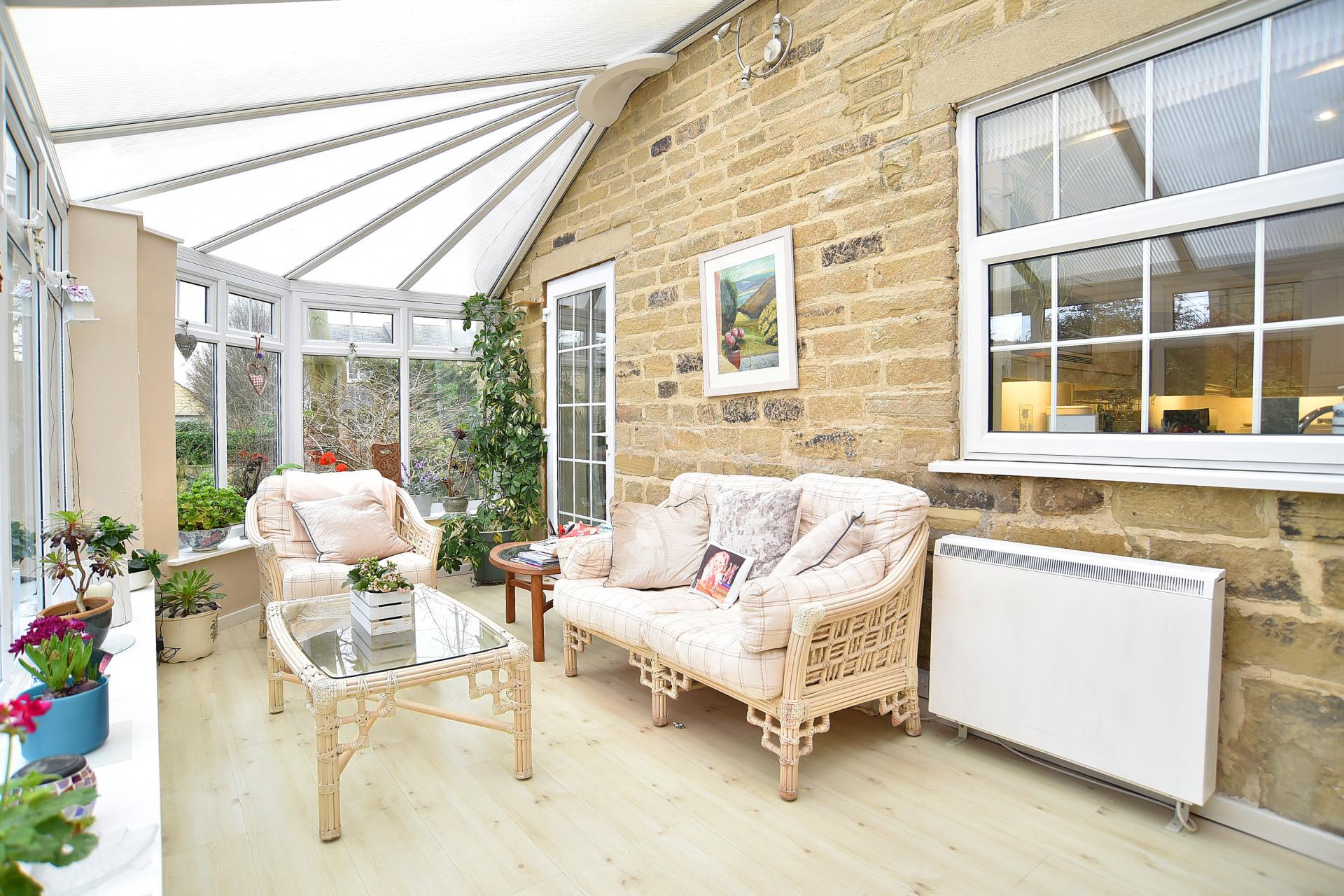 To the rear of the property is a particularly appealing flagged patio area, ideal for outdoor dining and relaxing, enjoying a peaceful outlook across the mature rear garden. The rear gardens are thoughtfully landscaped with established borders, raised beds, shrubs, trees and soft fruits, offering year-round interest. Enclosed by stone walls, hedging and fencing, the outdoor space provides both privacy and versatility, with a variety of areas to enjoy throughout the seasons. With shed and greenhouse.