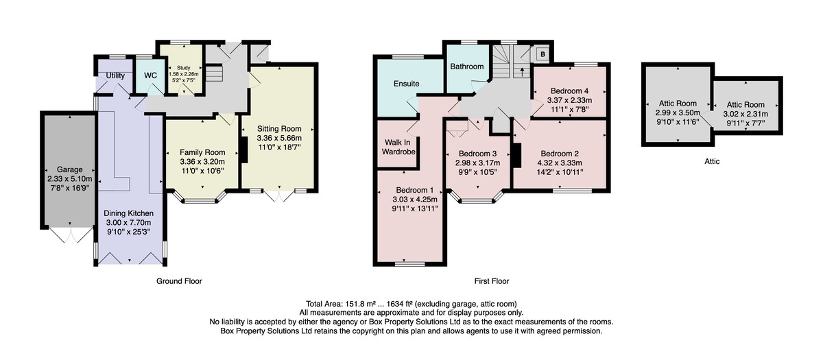 This well presented family home reveals flexible accommodation comprising in brief - entrance hall, cloakroom / WC, sitting room, family room, study, dining kitchen and a separate utility room. To the first floor, a master bedroom suite with walk-in wardrobe and en-suite shower room, three further double bedrooms and a house bathroom. A large attic provides ample space and potential for future development, subject to planning consents .