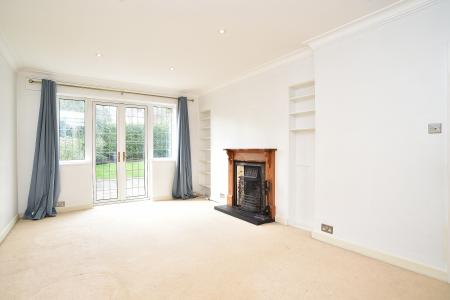 Cast-iron open fireplace, french doors leading to the rear patio and garden , alcove shelves, window to front elevation, central heating radiator.