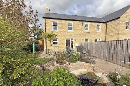 OUTSIDE A manageable south-facing rear garden with stone patio, planted boarders and pond. Two private parking spaces in the residents' parking court. Attractive built-in timber bin store, external tap, double socket, and brushed chrome lighting to front and rear elevations.