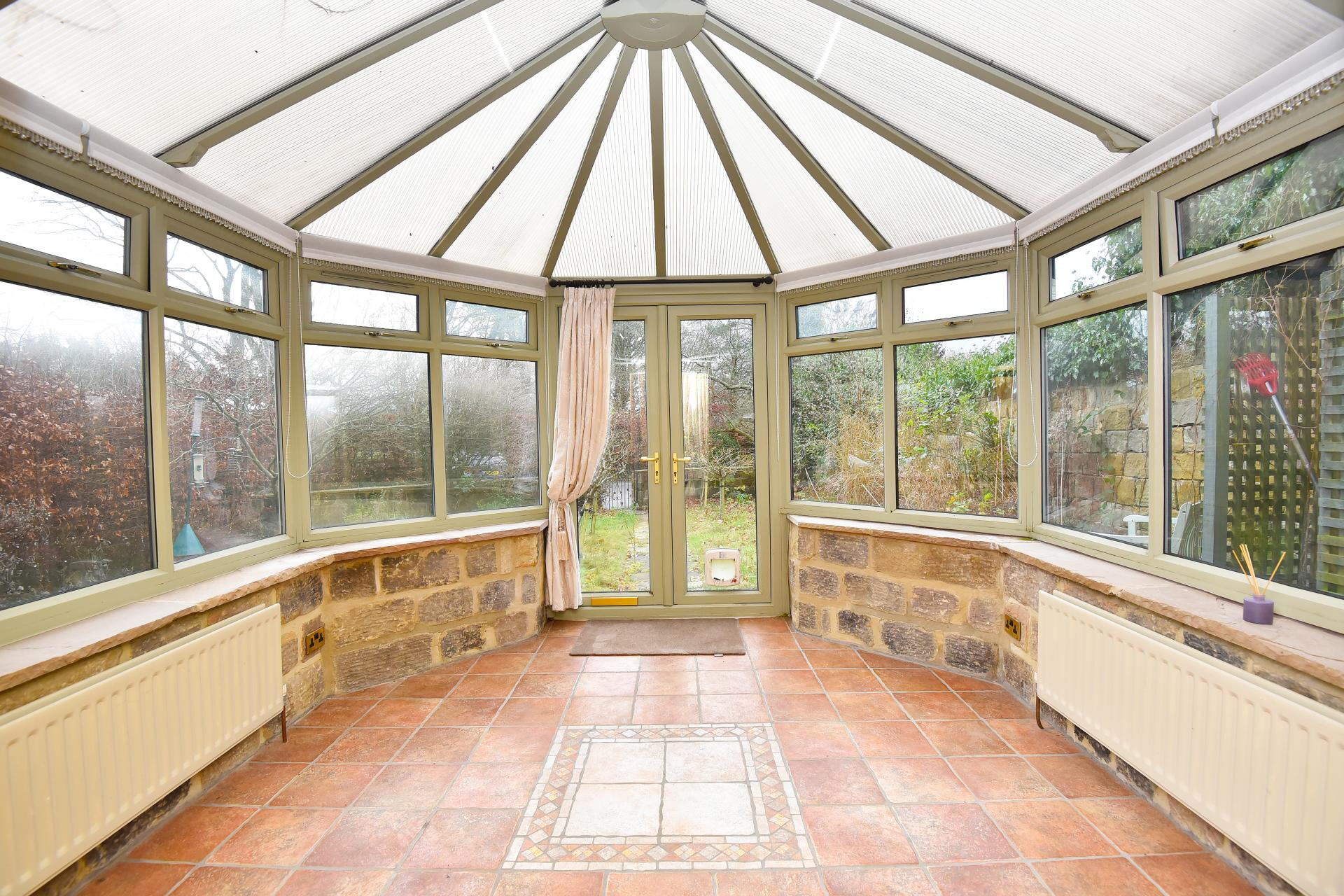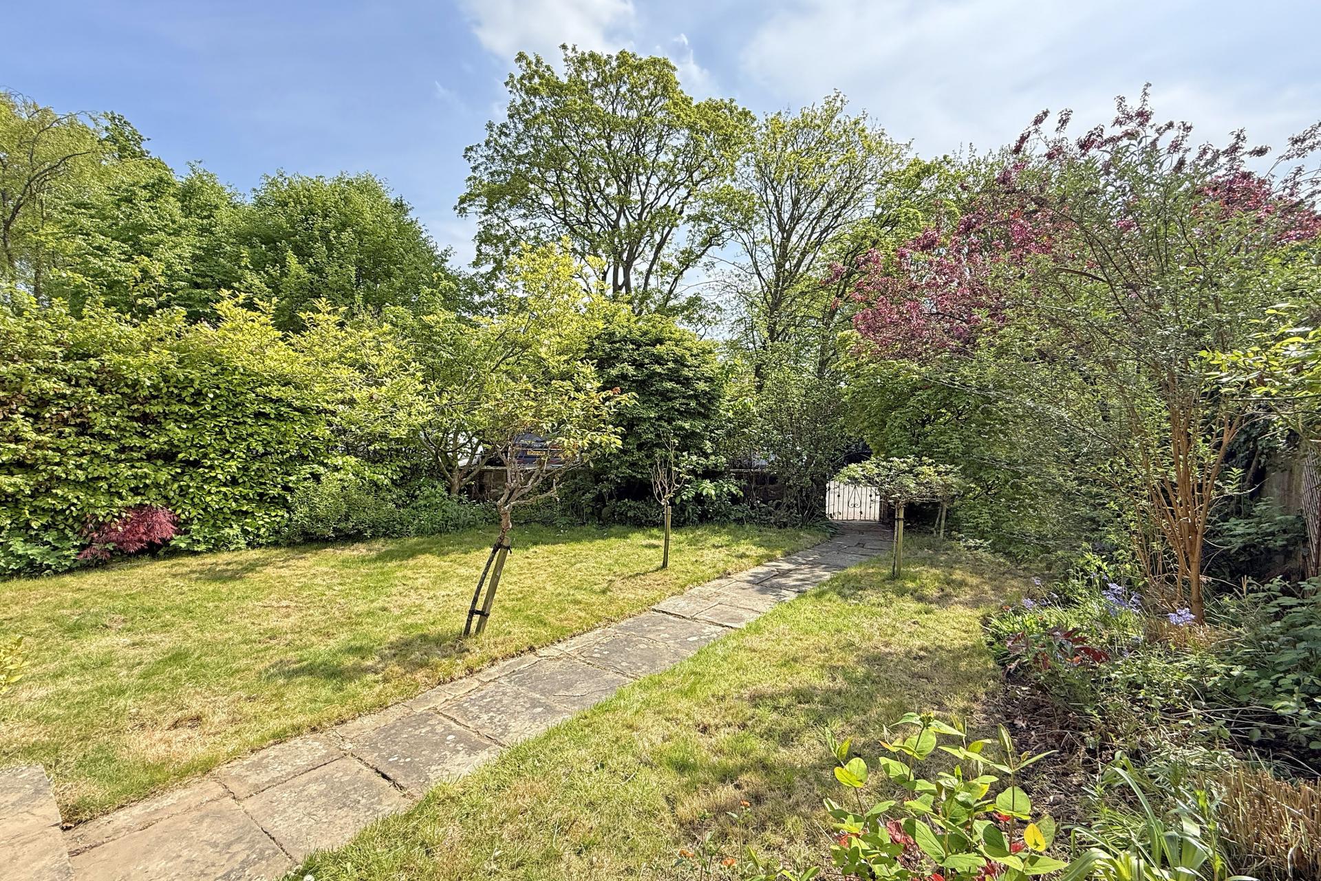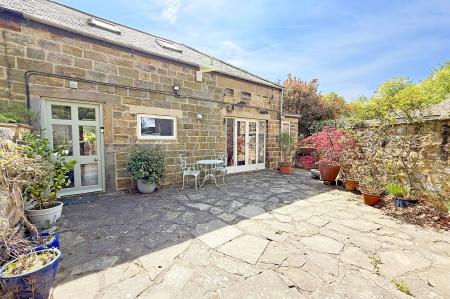 OUTSIDE Outside and to the rear of the property is a south facing courtyard garden and to the front and mainly laid to lawn with well stocked boarders, offering a high degree of privacy.