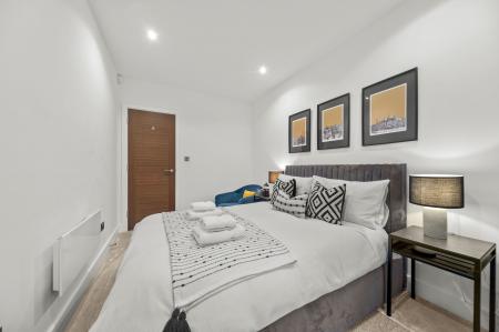 The apartment also features a modern main bathroom, comprising a bath with overhead shower, wash basin with vanity storage and WC.
