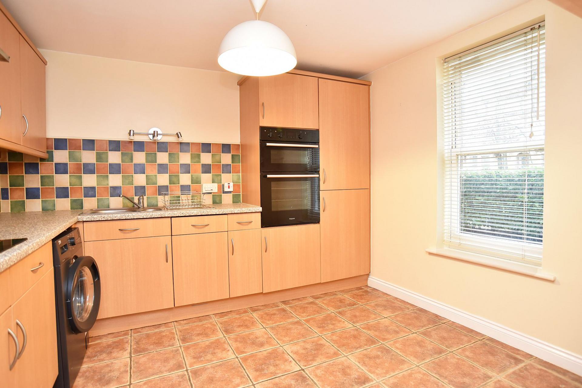 The well-appointed breakfast kitchen is fitted with a comprehensive range of wall and base units with complementary work surfaces and a stainless steel sink. Integrated appliances include a double electric oven, four-ring hob with extractor hood above and a dishwasher, together with plumbing for a washing machine and space for additional appliances. Attractive tiled splashbacks and a tiled floor provide a practical finish, and a large window ensures plenty of natural light with space for a small dining table.