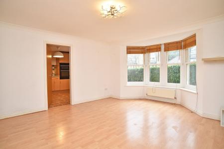 The generous living room is a bright and airy reception space featuring a wide bay window overlooking the communal gardens, allowing excellent natural light. The room offers ample space for both seating and dining areas and includes attractive wood-effect flooring, neutral décor and a modern feature fireplace creating an appealing focal point.