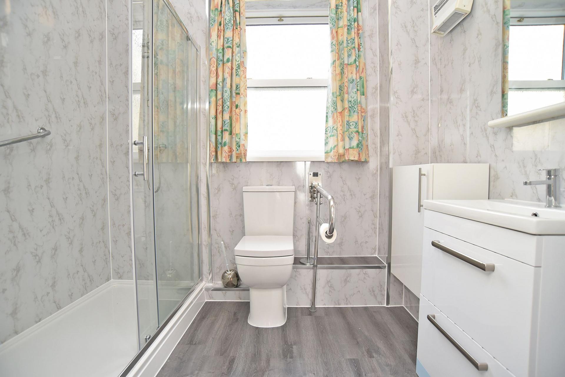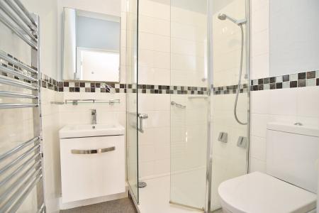 The bedroom is served by an en-suite shower room comprising shower, WC and basin together with heated towel rail.
