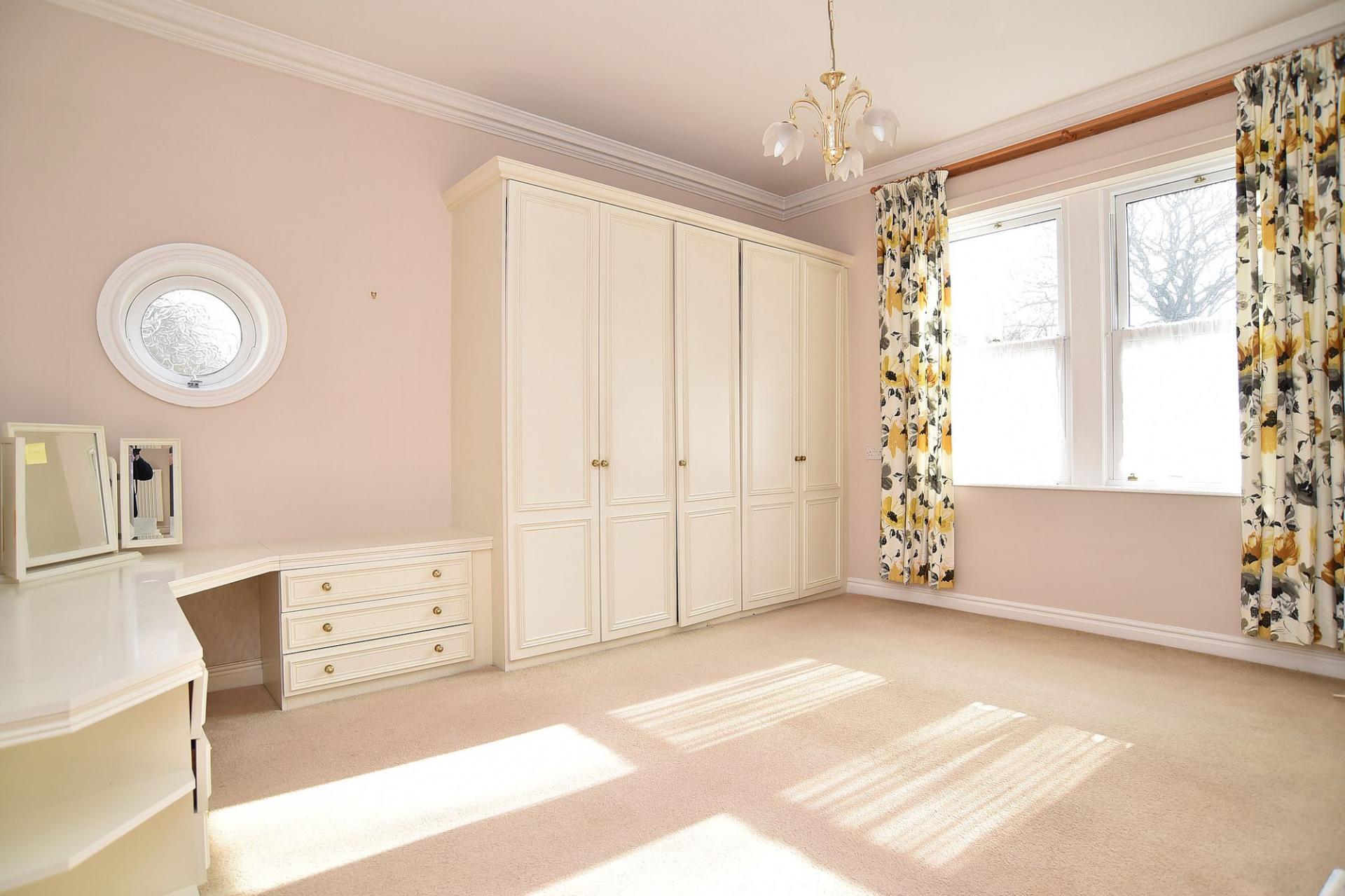 The principal bedroom is a large double room with sash window enjoying the same pleasant southerly outlook over the Stray together with a circular side window. The room benefits from an extensive range of fitted wardrobes, drawers and dressing table.