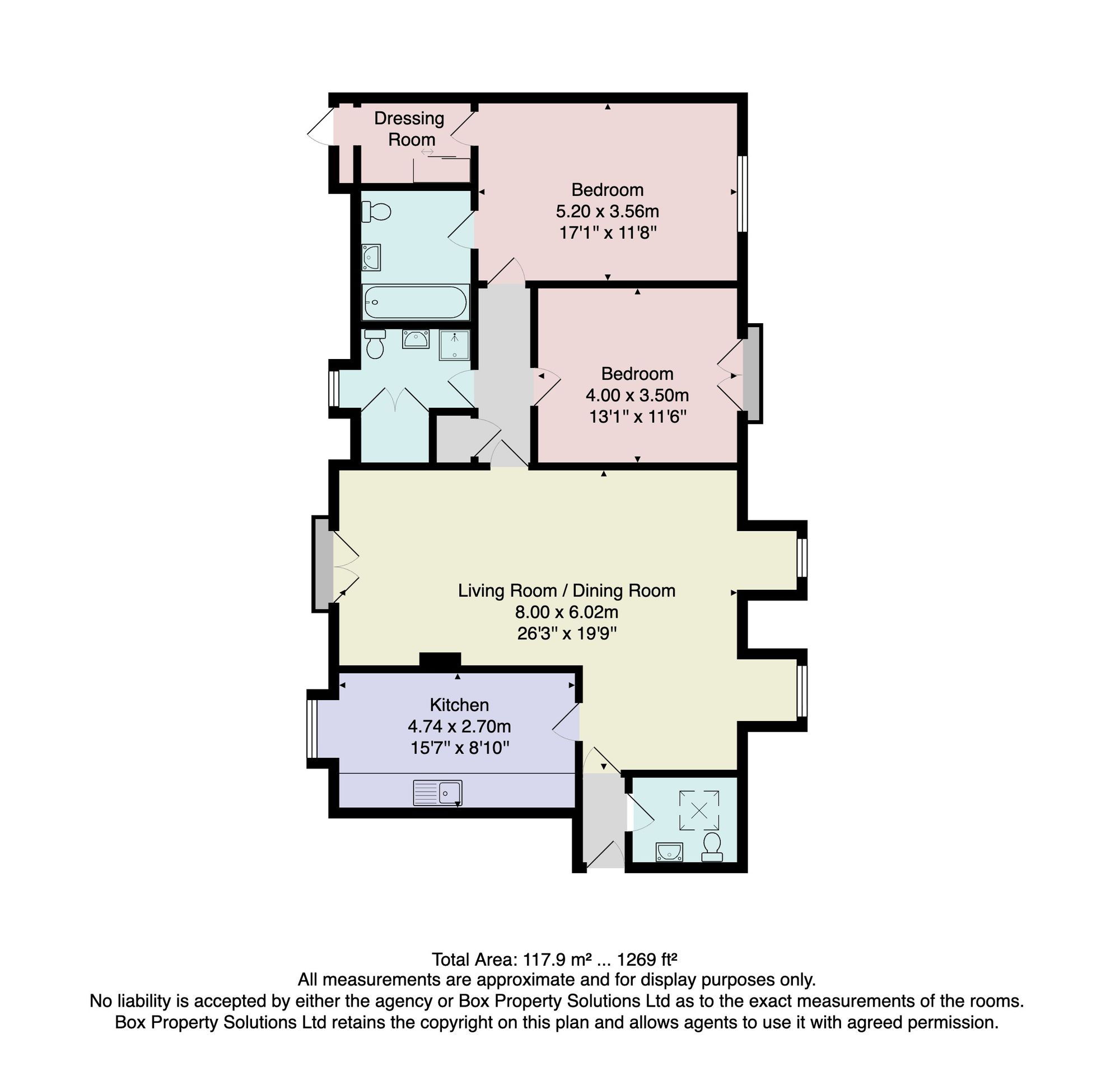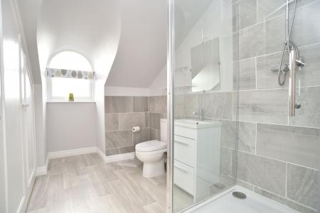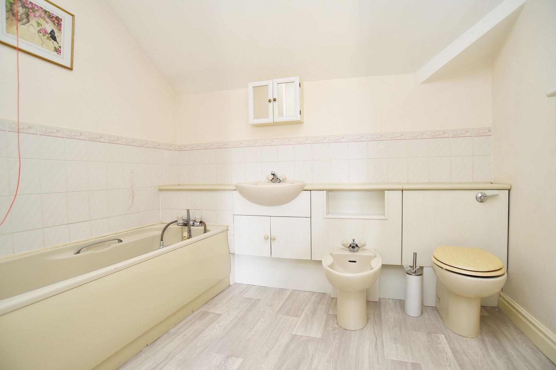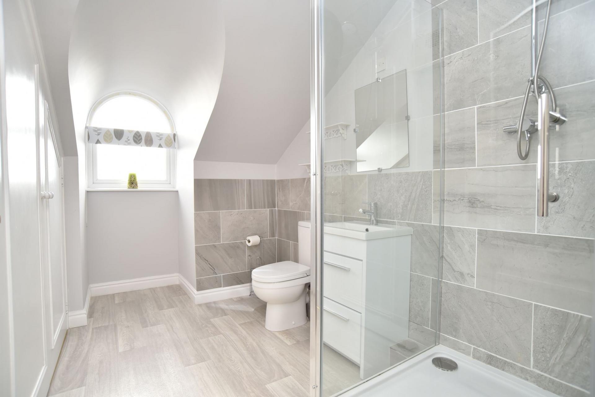 A well appointed house bathroom serves the apartment, complemented by a separate W/C for added practicality and convenience.