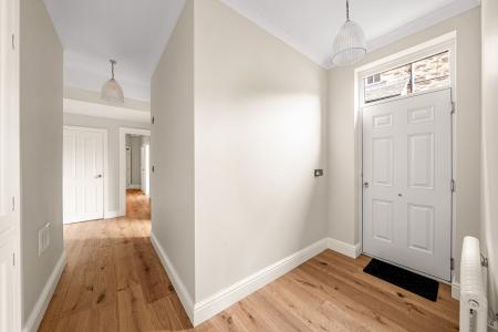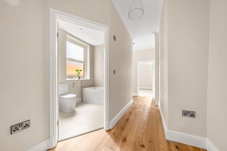 A welcoming entrance hall with quality wood flooring provides access to all principal rooms and reinforces the apartment's well-considered layout. A floor to ceiling fitted cupboard offers excellent storage and space/plumbing for a washing machine or washer drier. It also houses a new combi-boiler which feeds new, Victorian style, column radiators throughout the apartment.