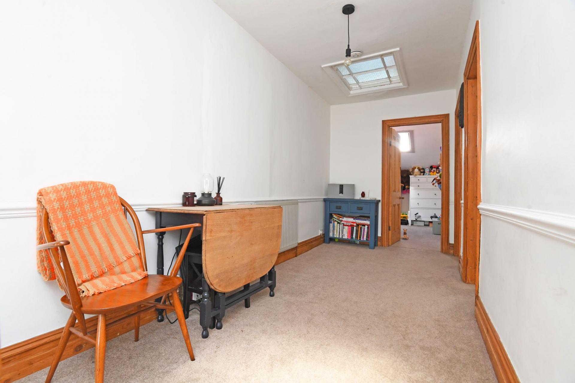Raised level with window lights to ceiling and central heating radiator.
