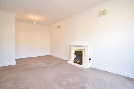 A spacious reception room with clearly defined sitting and dining areas. Electric fire. A glazed patio door leads directly onto the communal gardens.