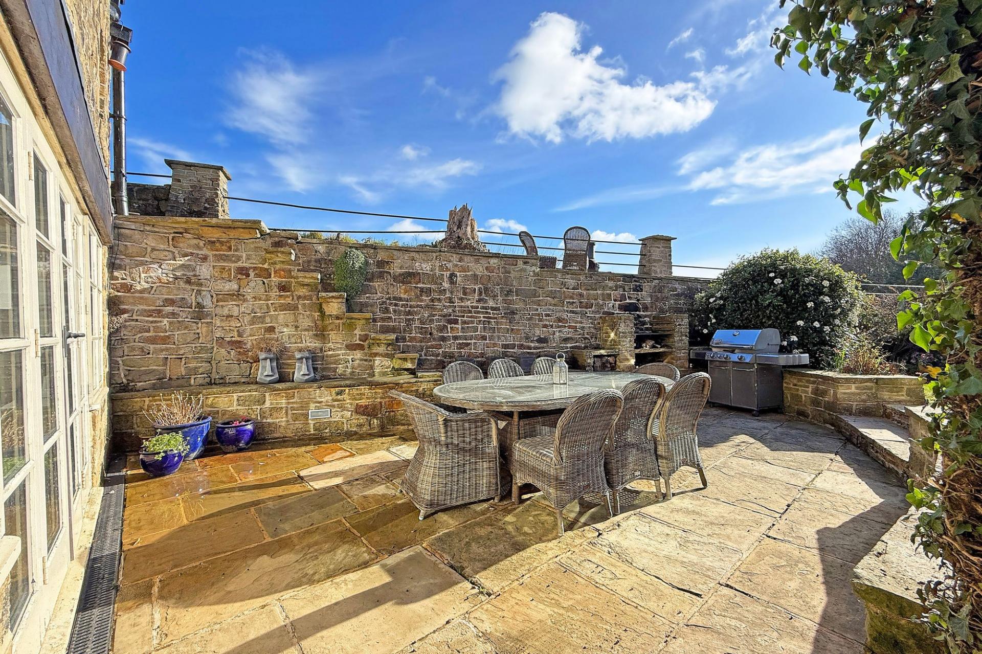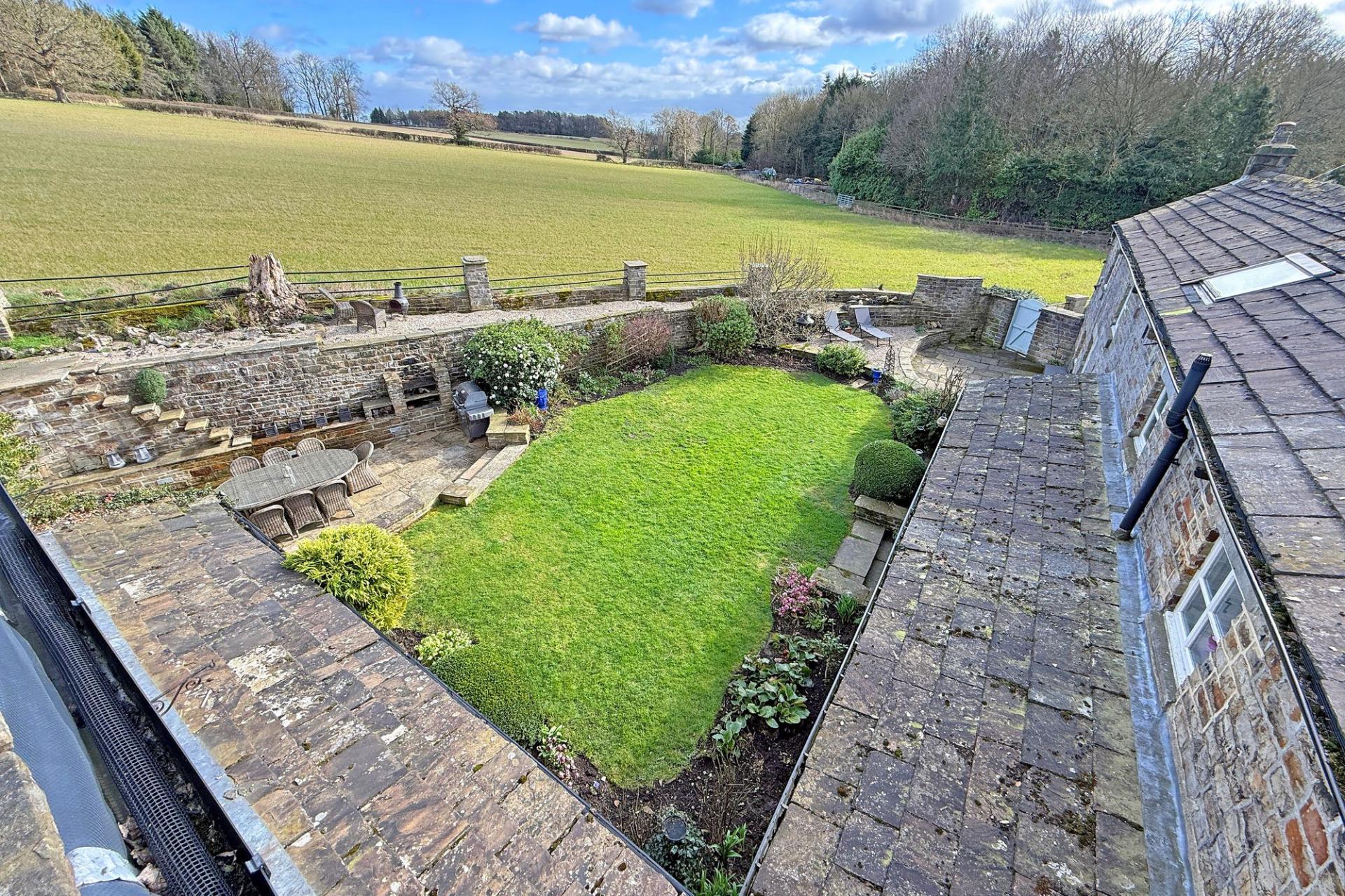 Brig Hall stands within attractive private gardens and benefits from generous parking arrangements. A private parking area opposite the property provides space for up to five vehicles, while additional driveways to either side of the house offer further parking, one of which leads to the large integral garage. To the rear, the property enjoys a beautifully landscaped enclosed garden featuring a central lawn, well-stocked borders, and several patio seating areas, together with a bespoke built-in barbecue. Backing directly onto open countryside, this delightful outdoor space provides a high degree of privacy and creates an idyllic setting for outdoor living and entertaining.