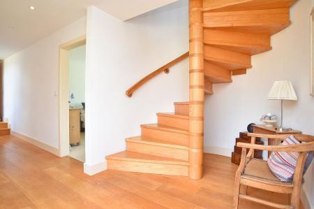 A spacious landing which could be utilised as a study area, with door leading to a balcony and external steps to the garden.