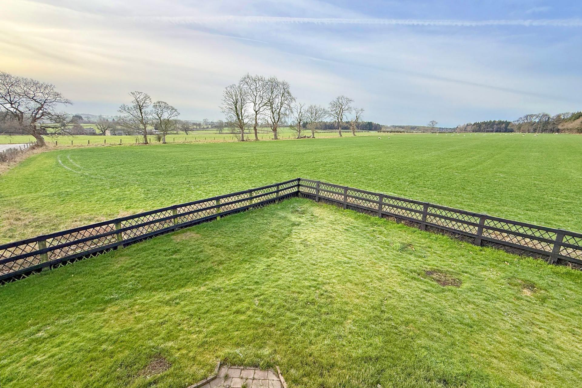 The accommodation includes four generous double bedrooms, two modern bathrooms and a useful ground-floor WC. Externally, the property benefits from driveway parking, a garage and attractive surroundings with views over open fields.