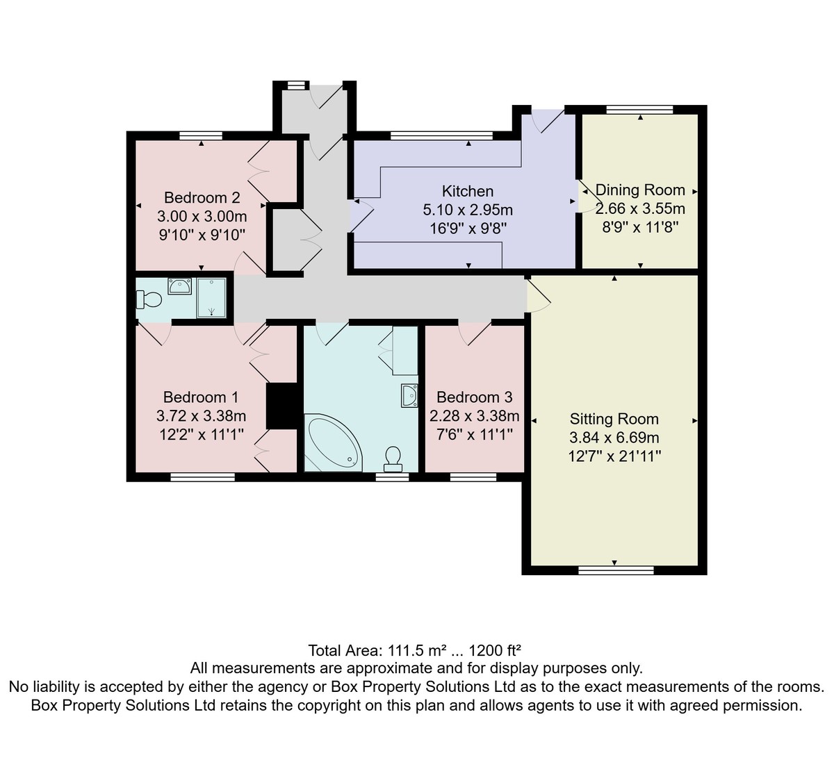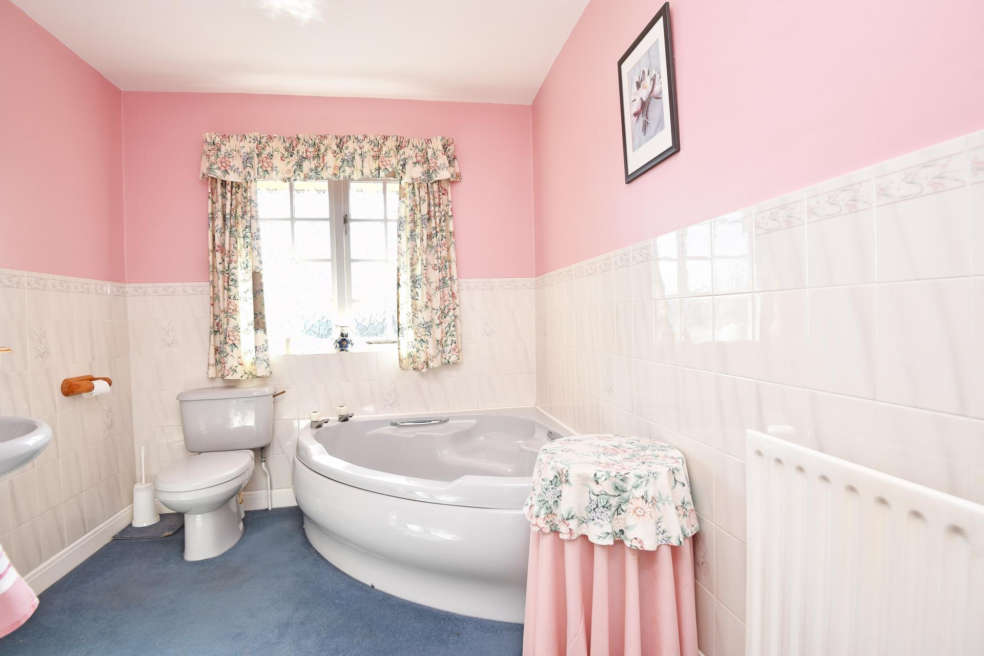 With WC, washbasin and corner bath.