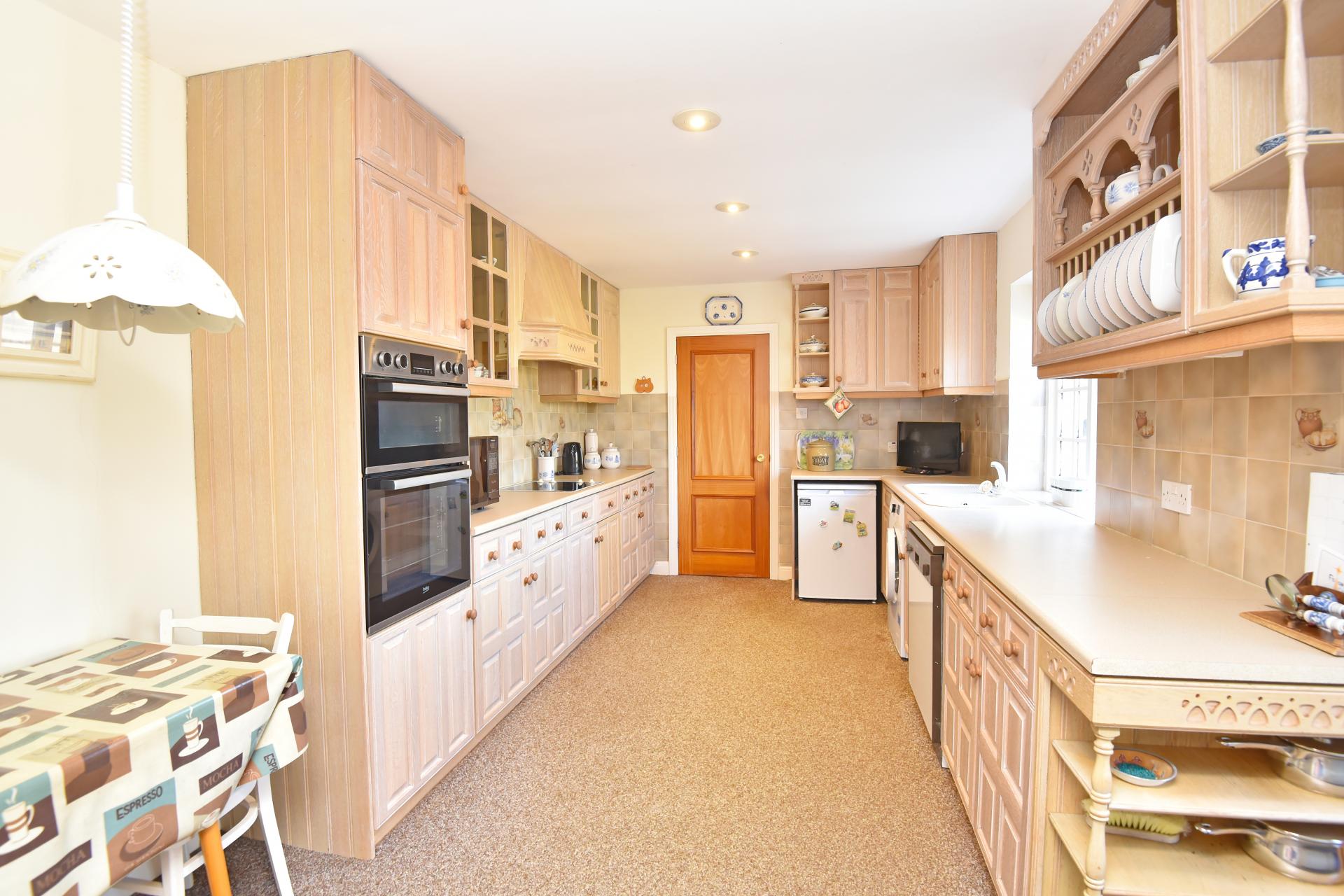 OUTSIDE A driveway provides parking and leads to a garage with light and power. Front garden with lawn and planted borders. To the rear, there is an attractive garden with lawn and patio, enjoying superb views over the surrounding countryside.