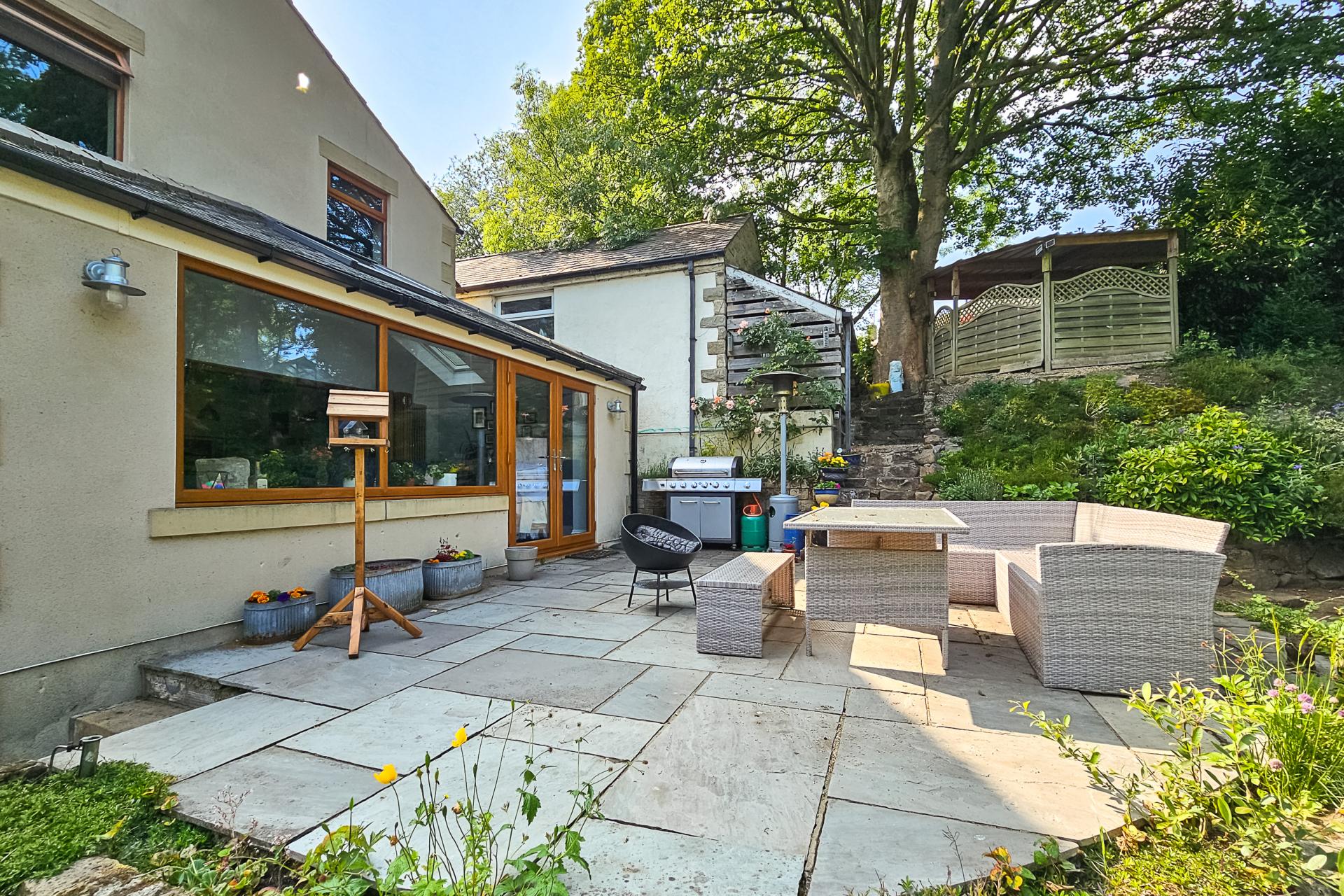 A particular feature of the property is the large and attractive gardens that run alongside the beck with hot tub and swimming pool. There is off-road parking for two vehicles and a single garage. Offered for sale with no onward chain.