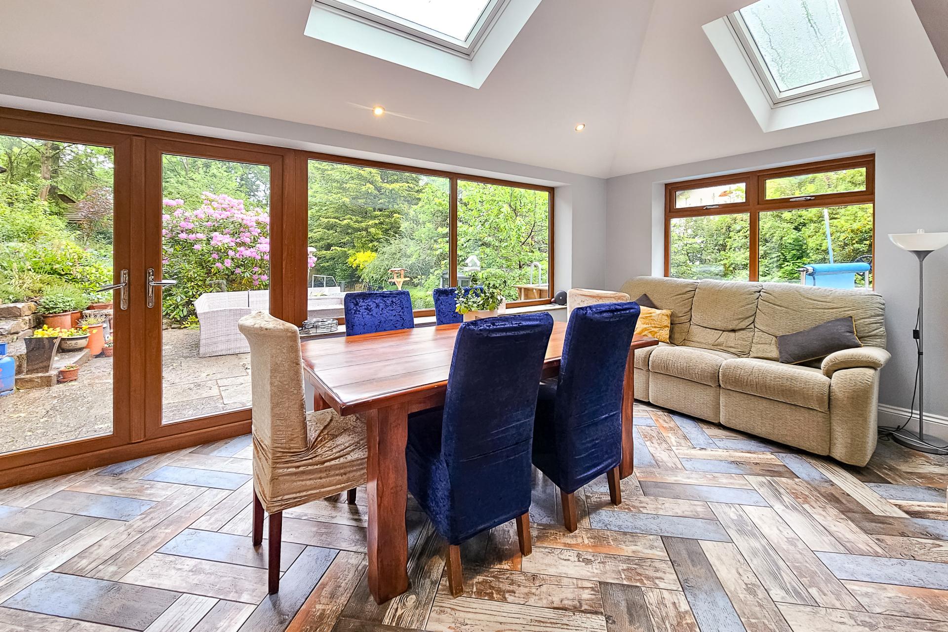 Providing a further sitting or dining area with patio doors leading to the garden.