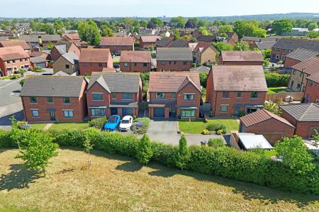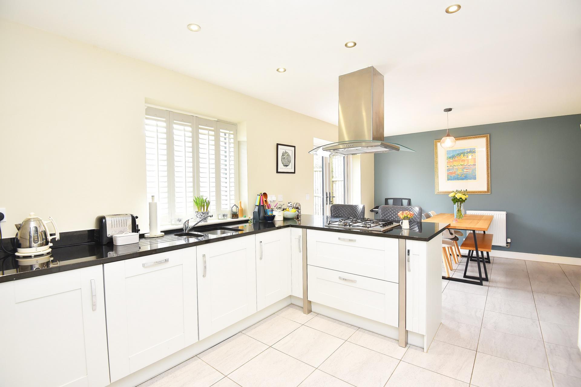 The well-presented accommodation comprises a large sitting room, together with a stunning open-plan dining kitchen with glazed doors leading to the garden, utility room and downstairs WC. On the first floor there are four bedrooms, a bathroom and modern en-suite shower room. The property occupies a generous plot, having off-road parking, a single garage and an attractive rear garden. The property is situated in a delightful position on the end of a quiet cul-de-sac with open aspect over the adjoining countryside, forming part of this popular modern development.