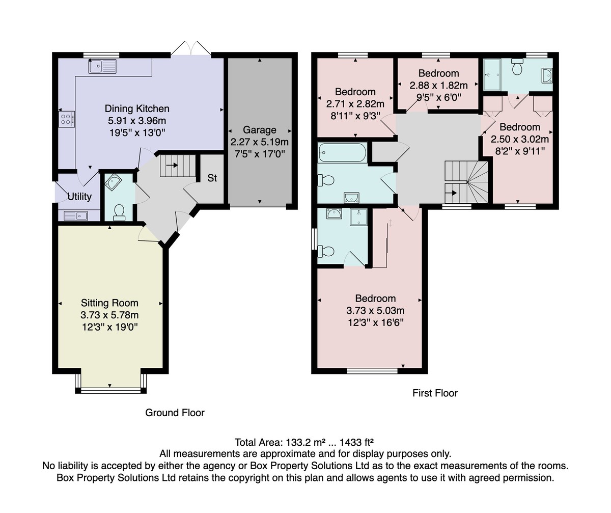 There are four good-sized bedrooms on the first floor, two of which have fitted wardrobes and en-suite shower rooms.