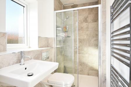 There are four good-sized bedrooms on the first floor, including the main bedroom with Hammond fitted wardrobes and en-suite shower room .