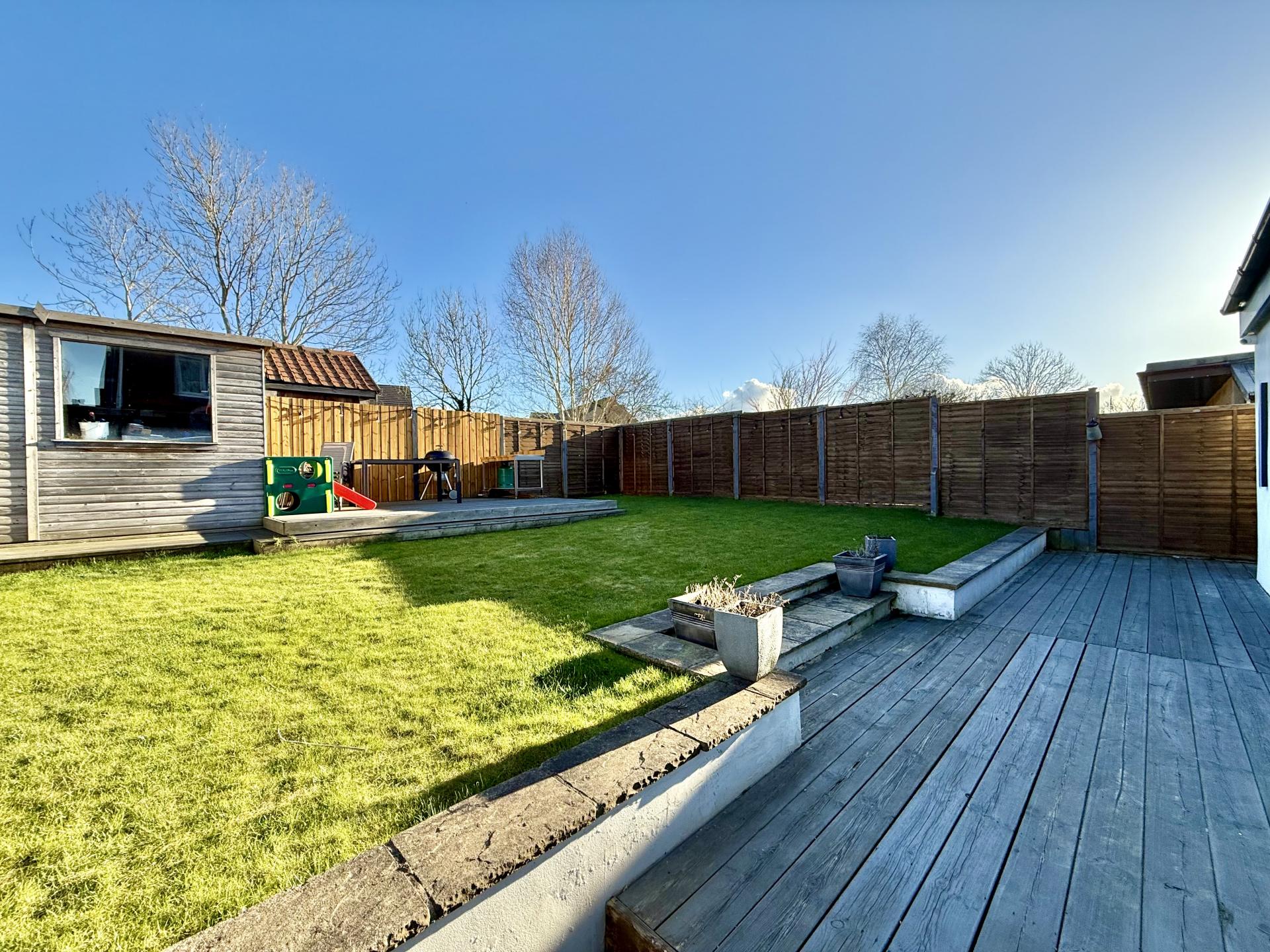 OUTSIDE A drive provides parking and there is an electric vehicle charging point. To the rear of the property there is a large and attractive garden with lawn and decked sitting areas. Timber garden shed with power.