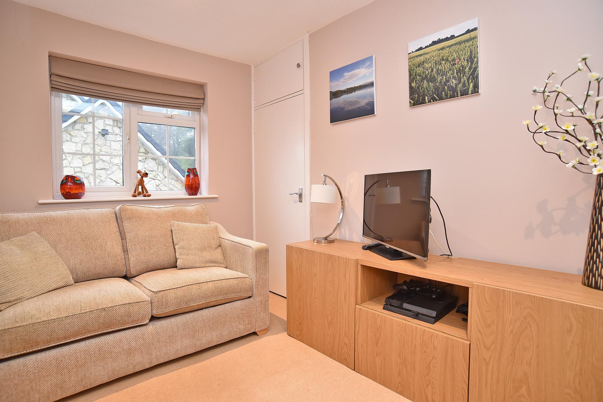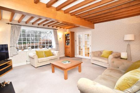 A good-sized reception room with bay window, log burner and beamed ceiling.
