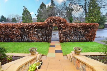 OUTSIDE A driveway leads to a good-sized garage. Mature gardens to front, side and rear. The rear garden incorporates a paved sitting area and shaped lawn