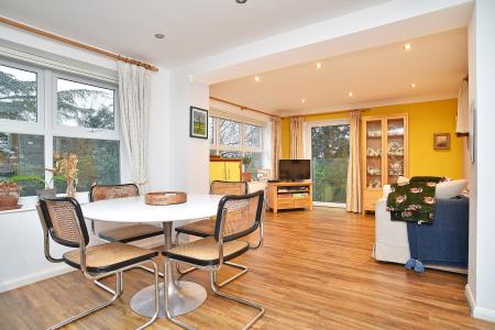 ACCOMMODATION The ground floor offers a well-balanced layout with excellent natural light throughout. The main lounge is a calm and welcoming space, benefitting from direct access to the patio via French doors and a connecting door into the conservatory, creating a seamless link between the garden-facing rooms and an ideal setting for both everyday relaxation and entertaining.