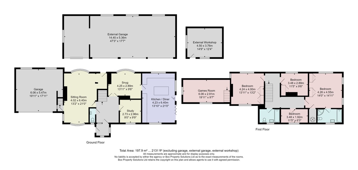 This handsome property provides generous and flexible accommodation. On the ground floor there is a sitting room, together with a snug and office, dining kitchen and cloakroom. Upstairs, there are four bedrooms, a bathroom and en-suite, as well as an additional first-floor games room / office. A particular feature of this individual property is the substantial garden which extends to over an acre in total and has extensive lawn, patio and a tennis court. A driveway provides parking and leads to a double garage, and a separate driveway provides further additional parking area and leads to a detached garage block with triple garage and store. There is also an additional storeroom / workshop.
