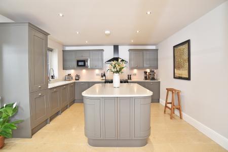 A particular feature to the house is the stunning living kitchen with generous kitchen and dining area. This superb room with tiled floor incorporating bay window to side, double doors onto the rear garden. The kitchen features a central island extensive range of wall and base units, integrated appliances and range cooker.