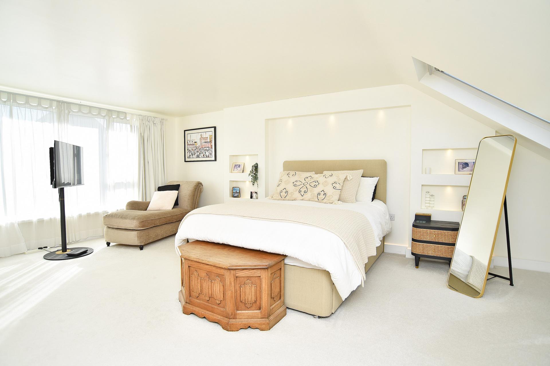 A most impressive double bedroom with luxury ensuite bathroom, dressing area and walk-in wardrobe providing access to eaves storage.