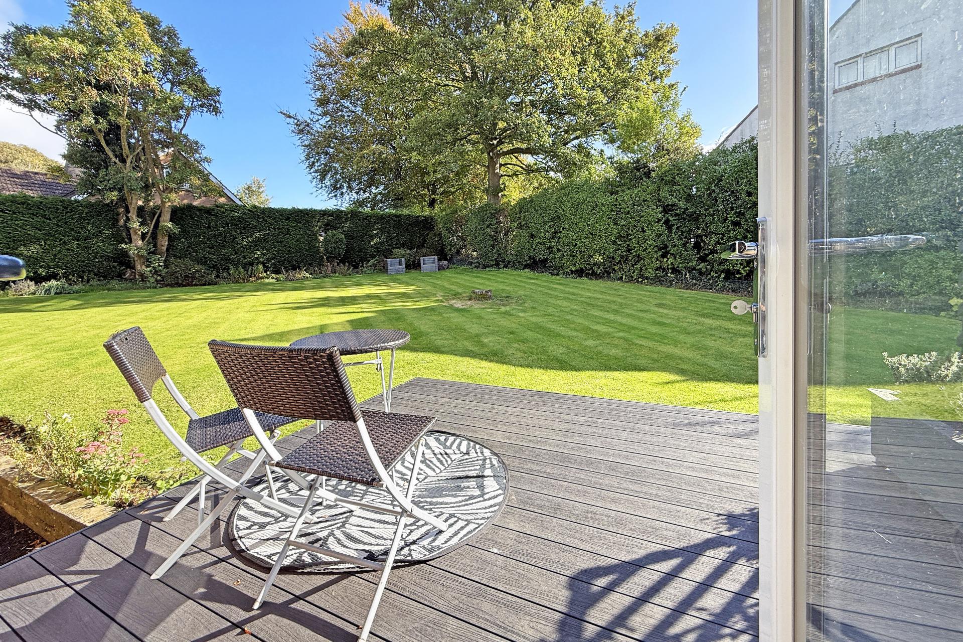 OUTSIDE The property occupies a generous plot with a beautifully maintained and highly private south-facing rear garden, mainly laid to lawn with a composite decked sun terrace leading directly from the kitchen. Double timber gates provide access to the extensive driveway which offers parking for multiple vehicles and leads to a large attached garage with light, power and EV charging point.