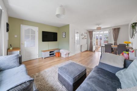 The spacious accommodation briefly comprises an entrance hall leading to a well-proportioned and light-filled through living/dining room, enjoying a large front-facing window and offering generous space for both relaxing and dining. French doors lead seamlessly into the conservatory, enhancing the sense of space and flow, ideal for modern family living and entertaining.