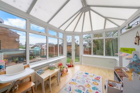 The conservatory is bright and spacious, with a glazed surround enjoying pleasant views over the rear garden. French doors provide direct access outside, creating a seamless connection between indoor and outdoor living, perfect as a garden room, playroom, or additional reception space.
