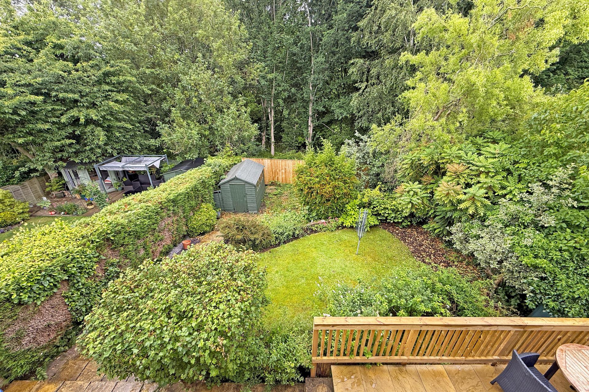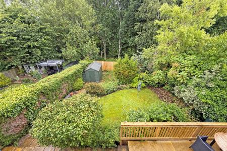 OUTSIDE A driveway provides parking with newly built carport. There is an attractive rear garden enjoying a delightful private outlook over the adjoining park and woodland, with lawn, mature planted borders and decked sitting area. Useful outside storage and timber garden shed.