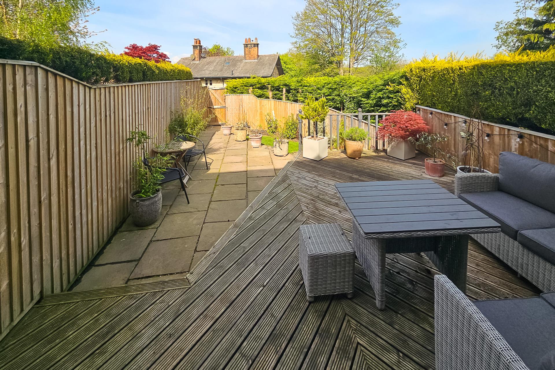 OUTSIDE To the front of the property there is a good-sized and attractive garden with lawn, planted borders and patio providing an excellent outdoor sitting and entertaining space. Glazed doors from the living area lead to a balcony, which provides an additional outside sitting area. To the rear of the property is a car parking space with double doors leading to an outside store.