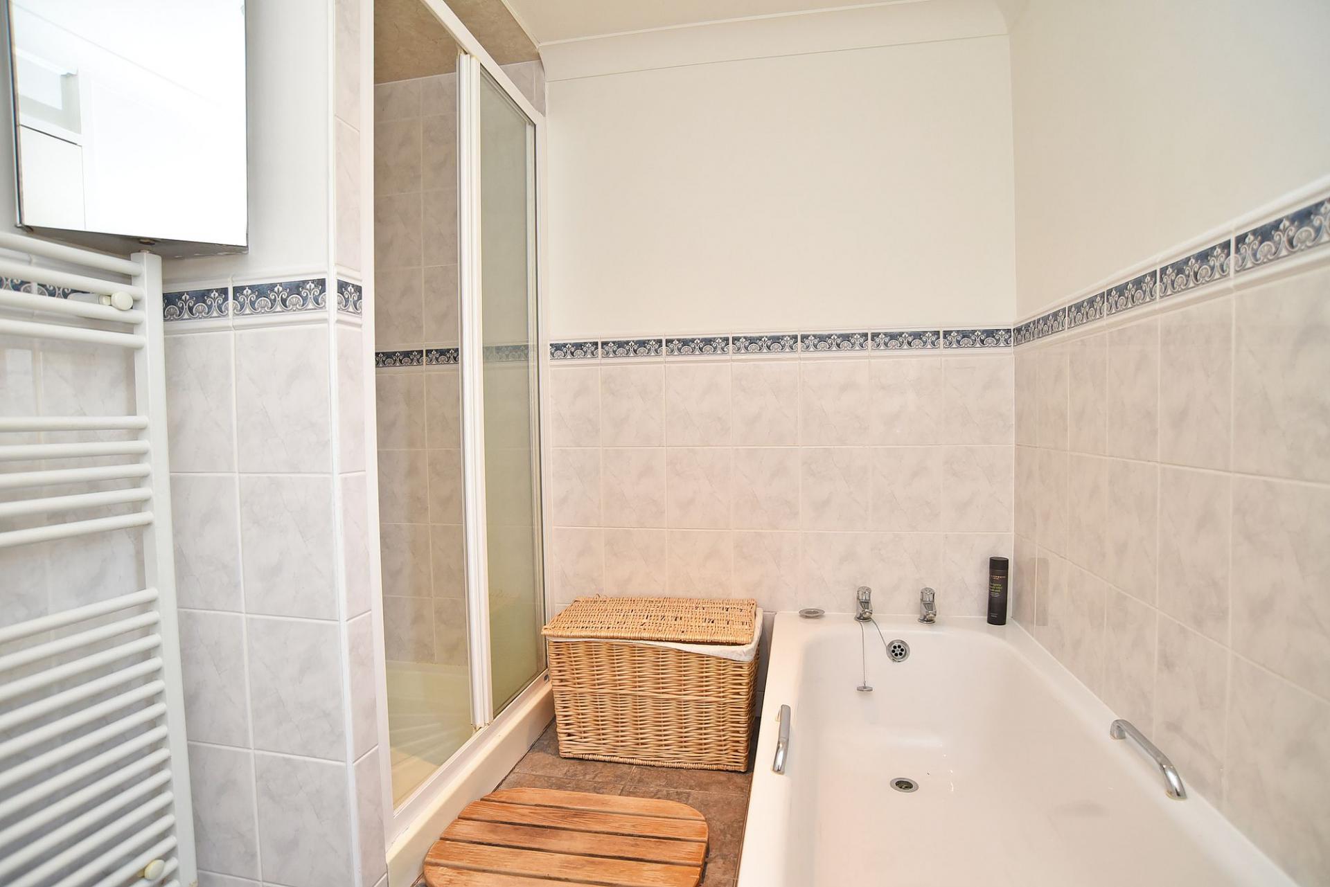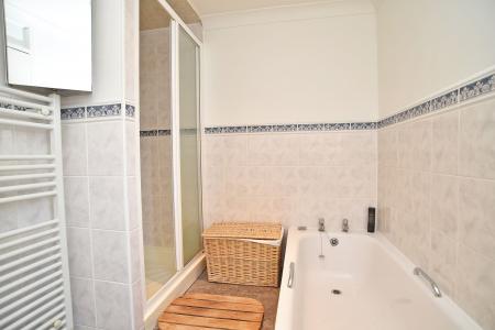 There are two double bedrooms. The principal bedroom benefits from a pleasant rear aspect, while the second bedroom is suitable as a guest room, study or additional bedroom, with built in wardrobes. The bathroom is fitted with a modern three-piece suite including a bath with shower over and contemporary tiling.