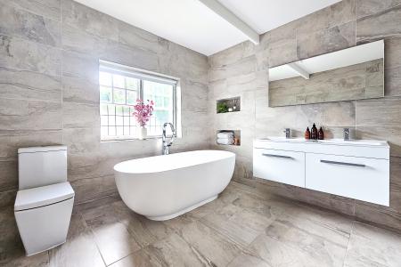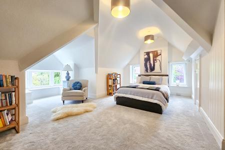 On the first floor there are three large bedrooms, with the master bedroom having fitted wardrobes and a modern BagnoDesign en-suite bathroom with bath, and there is a modern BagnoDesign house bathroom (both of these bathrooms have under-floor heating). Additional shower room / dressing room.