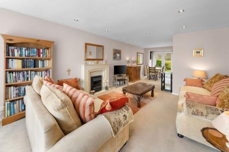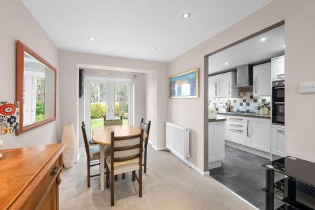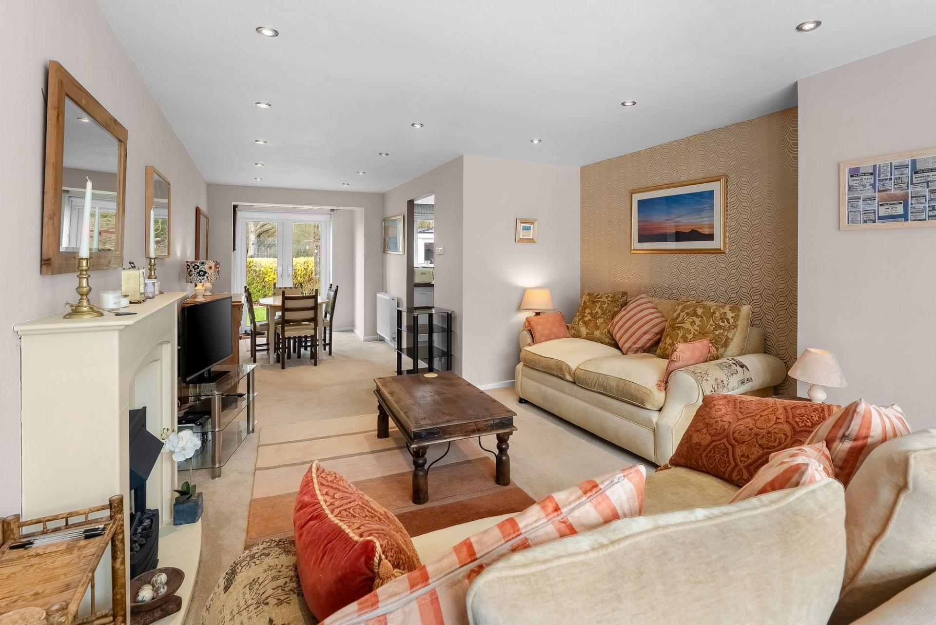 The spacious sitting and dining room is a particular feature of the property, providing an extended open plan living space with clearly defined sitting and dining areas. There is a window to the front elevation, glazed door leading directly to the rear garden and an attractive fireplace with electric fire.