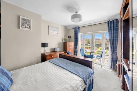 To the first floor are three beautifully presented bedrooms. The principal bedroom is a particularly attractive room featuring French doors opening onto a Juliet balcony, allowing natural light to flood the space while providing pleasant views across the rear garden.