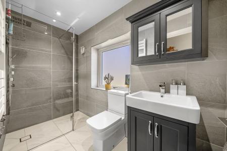 Two further bedrooms offer flexible accommodation suitable for family living, guests or home working and are served by a stylish shower room, finished with contemporary tiling and high-quality fittings.
