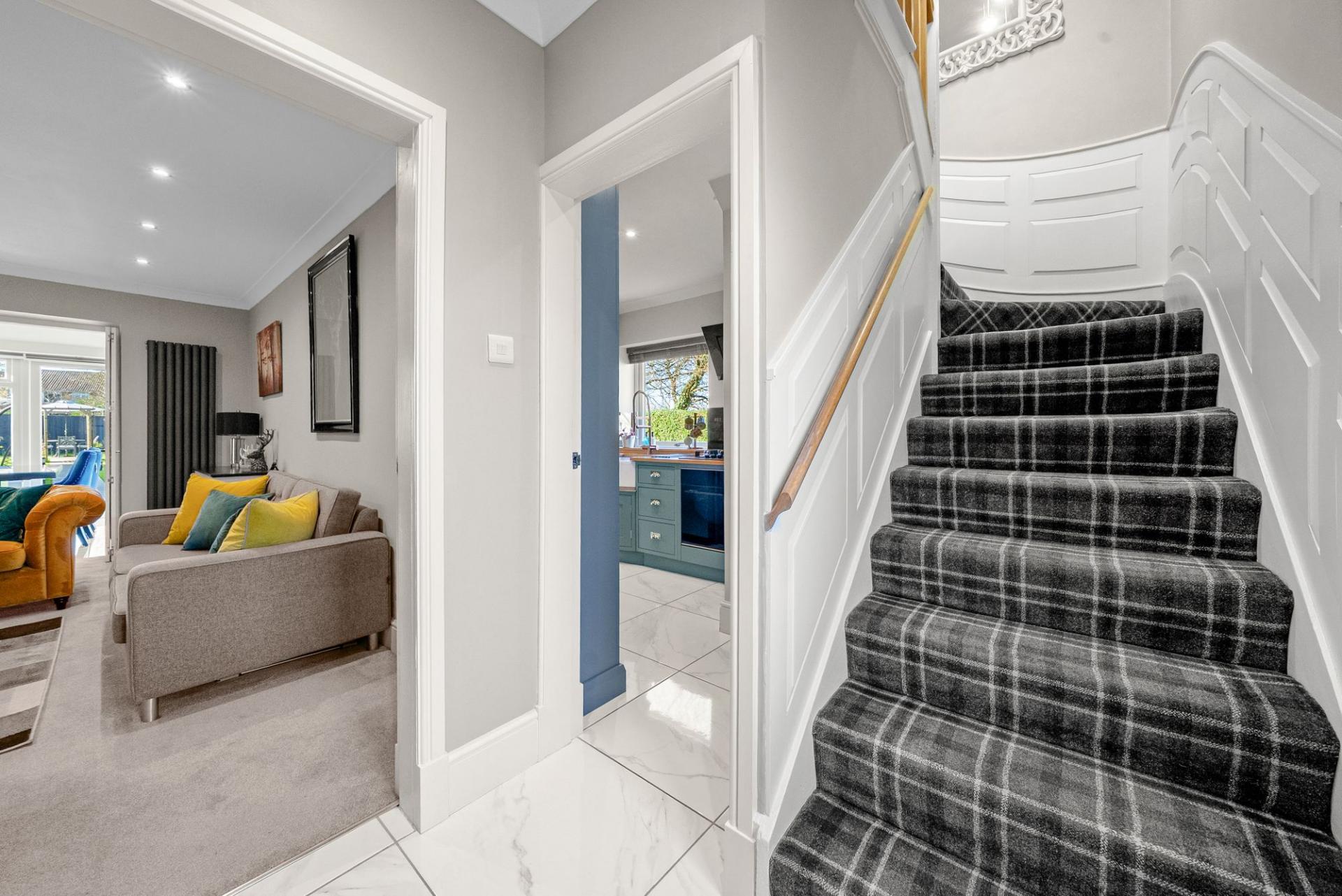 The accommodation is introduced via a welcoming entrance hall, an elegant space that sets the tone for the quality found throughout the property, with staircase rising to the first floor.