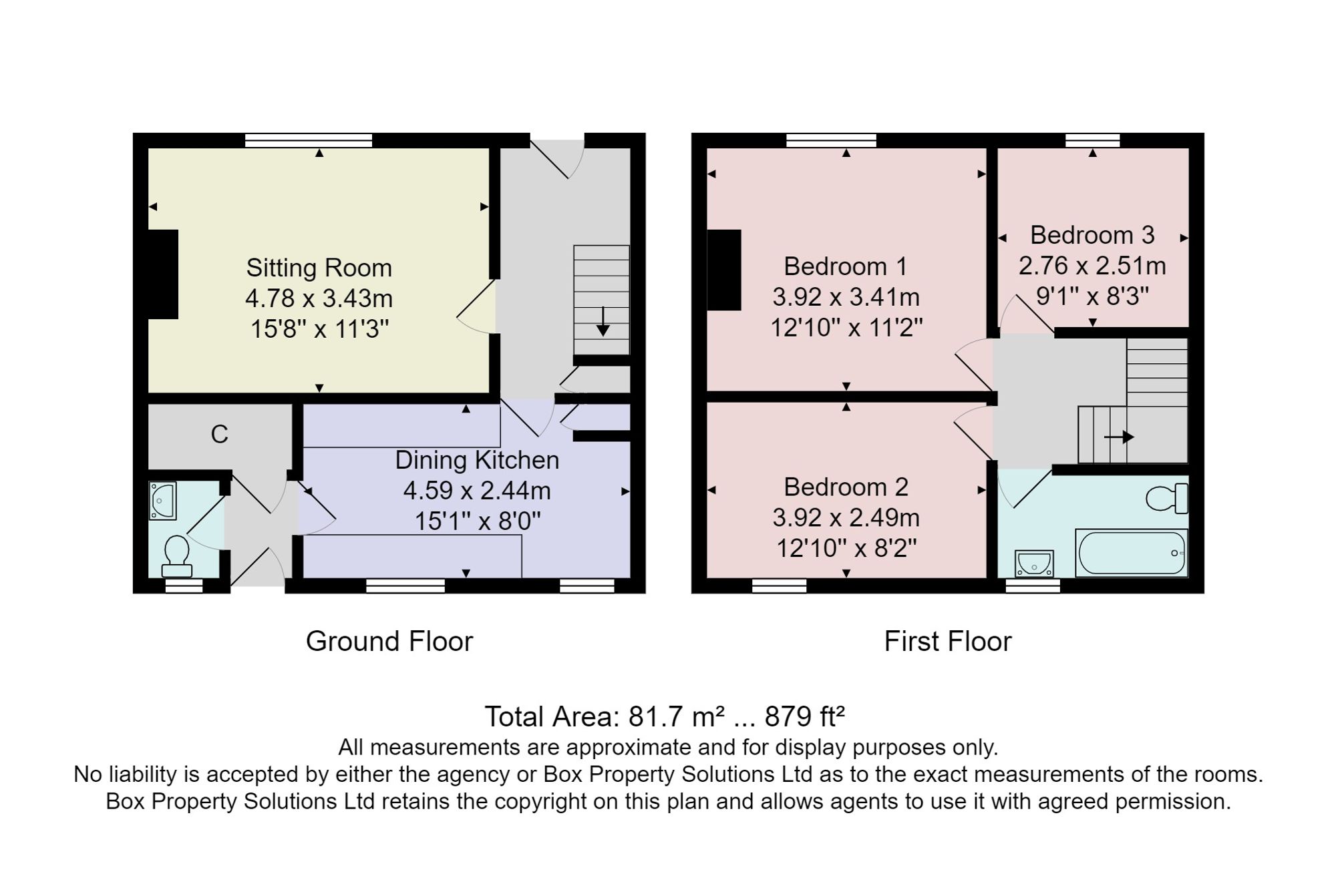 To the first floor are three well-proportioned bedrooms. The principal bedroom is a generous double, with a further double bedroom providing excellent additional space. The third bedroom is also a good size and would suit a child's bedroom, nursery or home office. The accommodation is completed by a modern house bathroom fitted with a white suite comprising bath with shower over and glazed screen, WC and washbasin set within a vanity unit, finished with contemporary tiling and a heated towel rail.