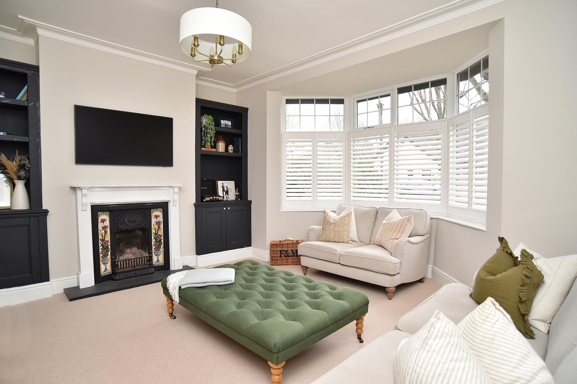 ACCOMMODATION Upon entering, the welcoming entrance hallway leads to a charming front living room featuring bespoke fitted cabinetry and a character fireplace, offering a warm and inviting reception space.