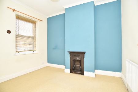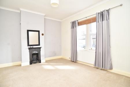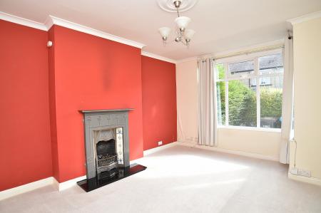 A spacious reception room with bay window to the front, feature fireplace and living-flame gas fire.