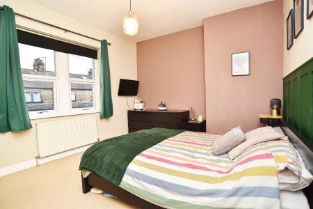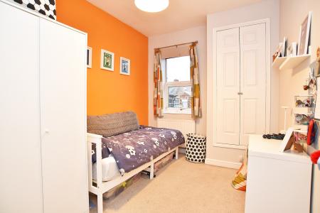 There are three bedrooms on the first floor, including the main bedroom which is of particularly generous proportions. The modern bathroom features a white suite comprising WC, washbasin and bath with shower above. The room is fully tiled and includes a heated towel rail.