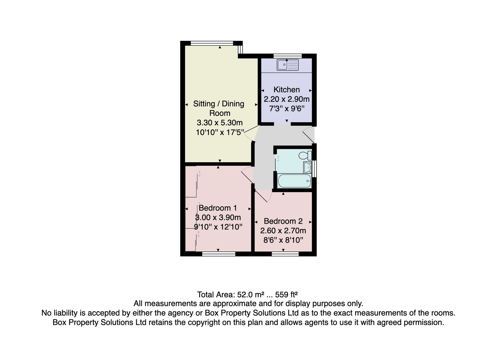 The accommodation is served by a bathroom fitted with a white suite comprising WC, basin and bath.