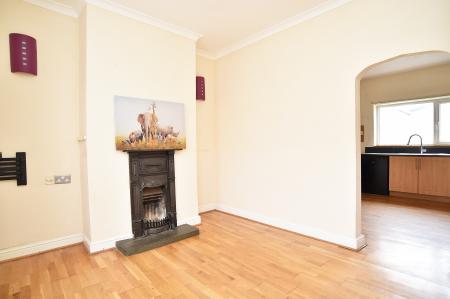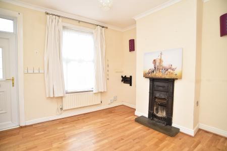 uPVC double-glazed window to the front. Central heating radiator. Feature cast-iron fireplace. Stairs to first floor.