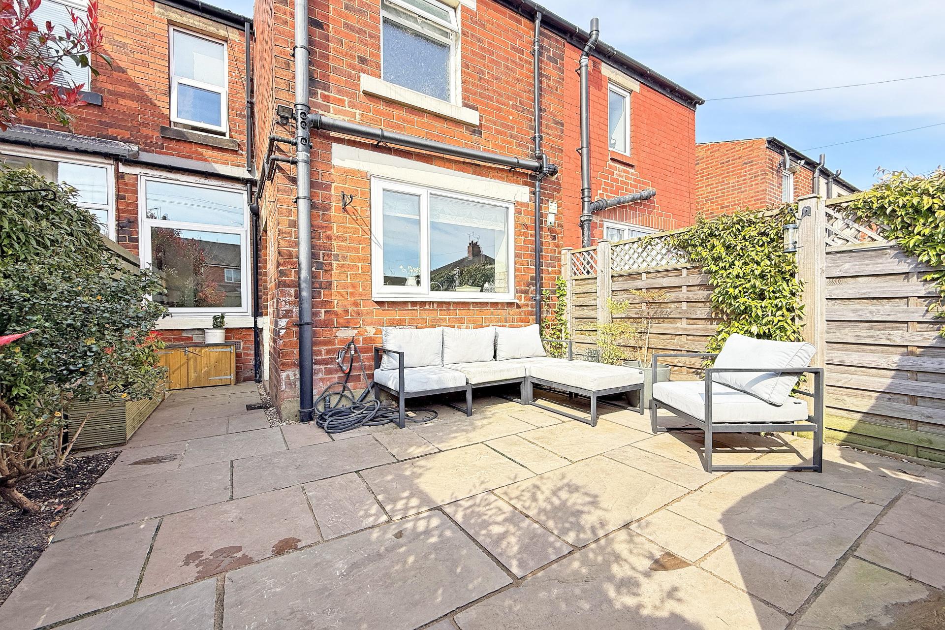 OUTSIDE The rear of the property there is a good-sized, attractive enclosed paved courtyard garden.